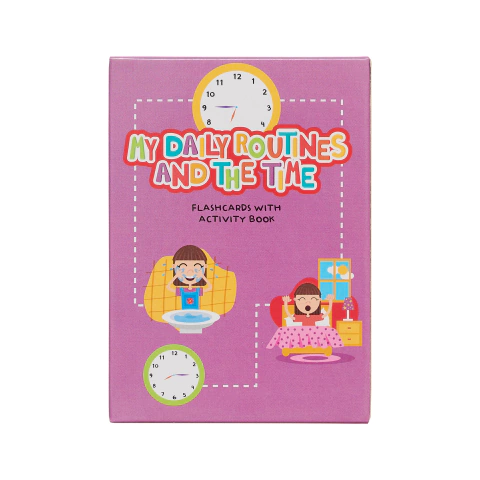 50 cartas educativas en inglés ideales para aprender y reforzar vocabulario sobre las acciones que componen nuestra rutina diaria. Los chicos aprenden también la hora y combinan las cartas con las acciones según el momento del día en que se realizan.